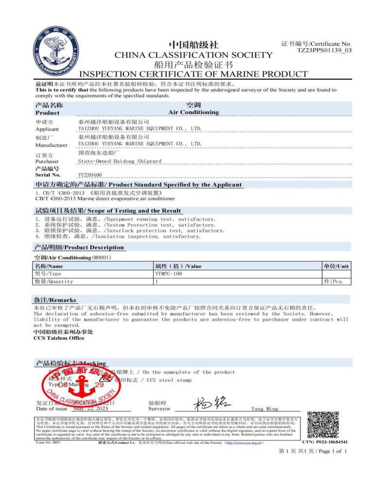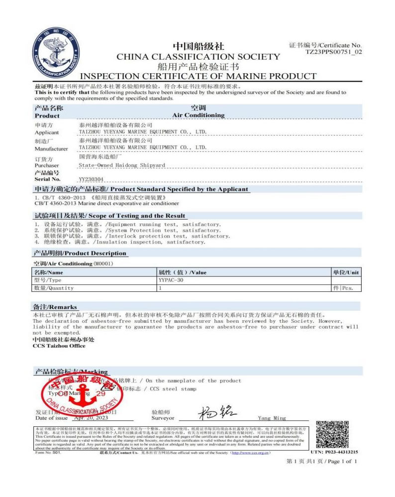 泰州越洋船舶設(shè)備有限公司多年專業(yè)從事艦船用空調(diào)、冷藏、冷凍設(shè)備、冷庫系統(tǒng),通風(fēng)安裝系統(tǒng)(空調(diào)通風(fēng),機(jī)艙通風(fēng),自然通風(fēng))等。本公司地處美麗的曲霞鎮(zhèn)工業(yè)園區(qū),固定資產(chǎn)1200萬人民幣,占地面積1.5萬平方米左右,公司產(chǎn)品廣泛用于海軍驅(qū)逐艦護(hù)衛(wèi)艦,補(bǔ)給艦,海警,醫(yī)療船,科考船等,如:“東方紅2“,“海大號(hào)”,“向陽紅06”,“向陽紅09”,“向陽紅03”,“大洋1號(hào)”,“東方紅3”,“向陽紅18”,“向陽紅52”,地質(zhì)級(jí)科考船“業(yè)冶錚”號(hào)海洋平臺(tái)。